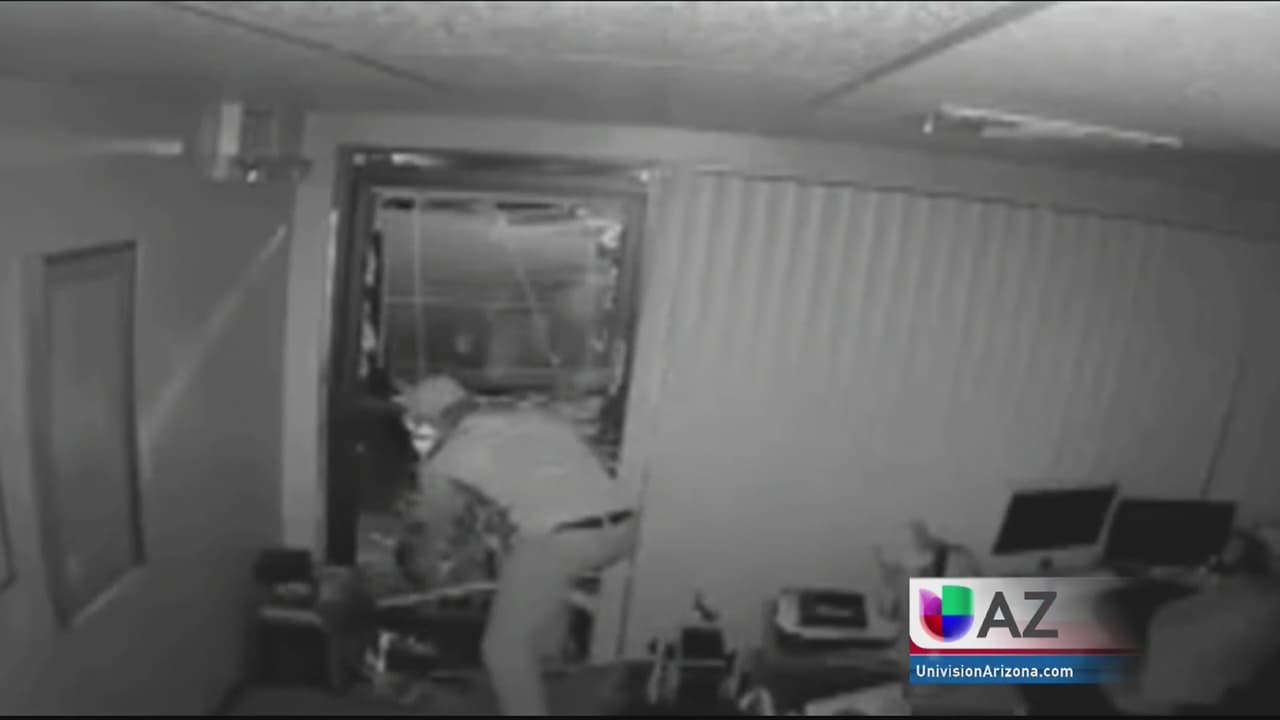 La cámara de seguridad de un negocio grabó el momento en que ladrones entraron a robar equipo de video, así como cable de video. Autoridades ofrecen una recompensa en efectivo.