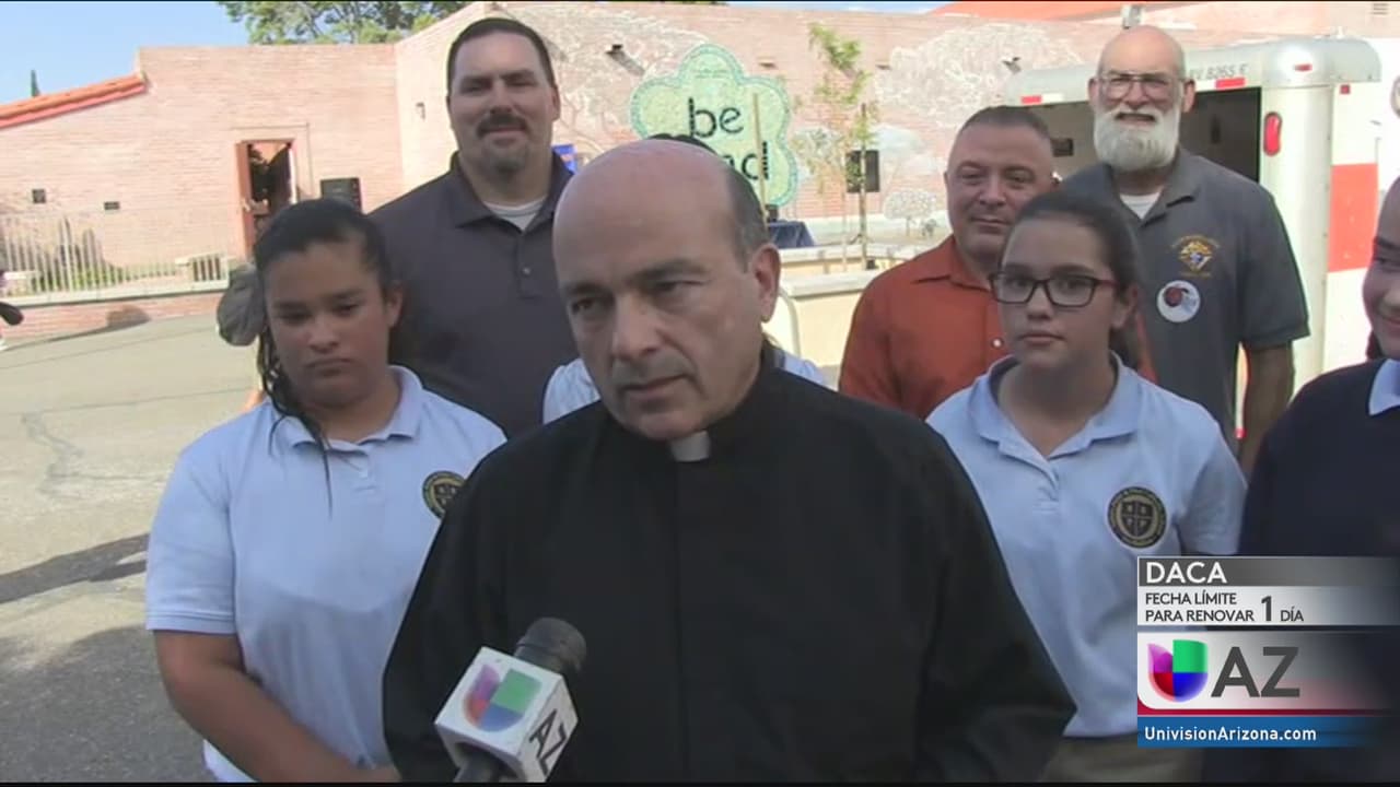 Alumnos de la escuela St. Peter En Tucson lograron reunir miles de libros, cuadernos y útiles para las escuelas afectadas, por los huracanes de Houston y Florida donde muchas escuelas se quedaron sin nada.