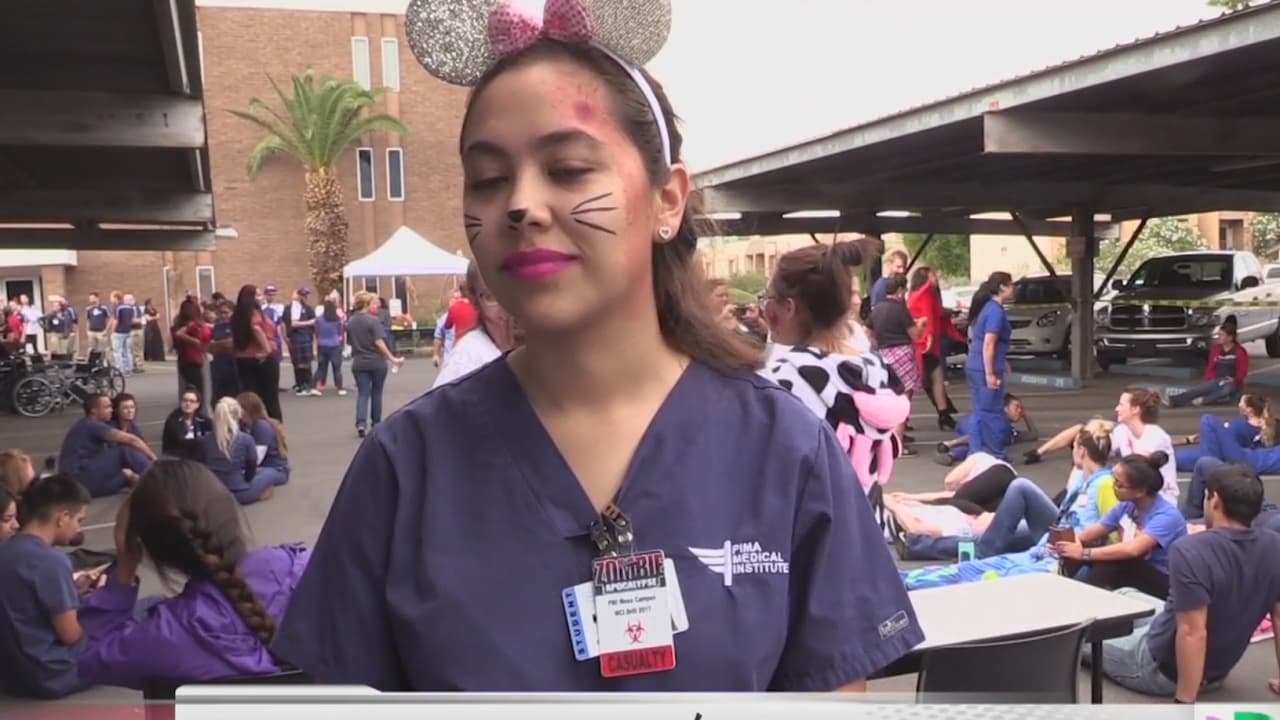 Estudiantes de Pima Medical Institute realizaron un simulacro de un ataque masivo zombie, donde personal de todos los departamentos participó y pudieron someterse a una situación de emergencia y poner en práctica sus conocimientos.