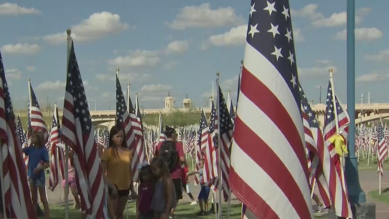 En un parque de Tempe se han colocado cerca de 3,000 banderas, una por cada víctima que murió en el atentado a las Torres Gemelas el 11 de septiembre de 2001.
