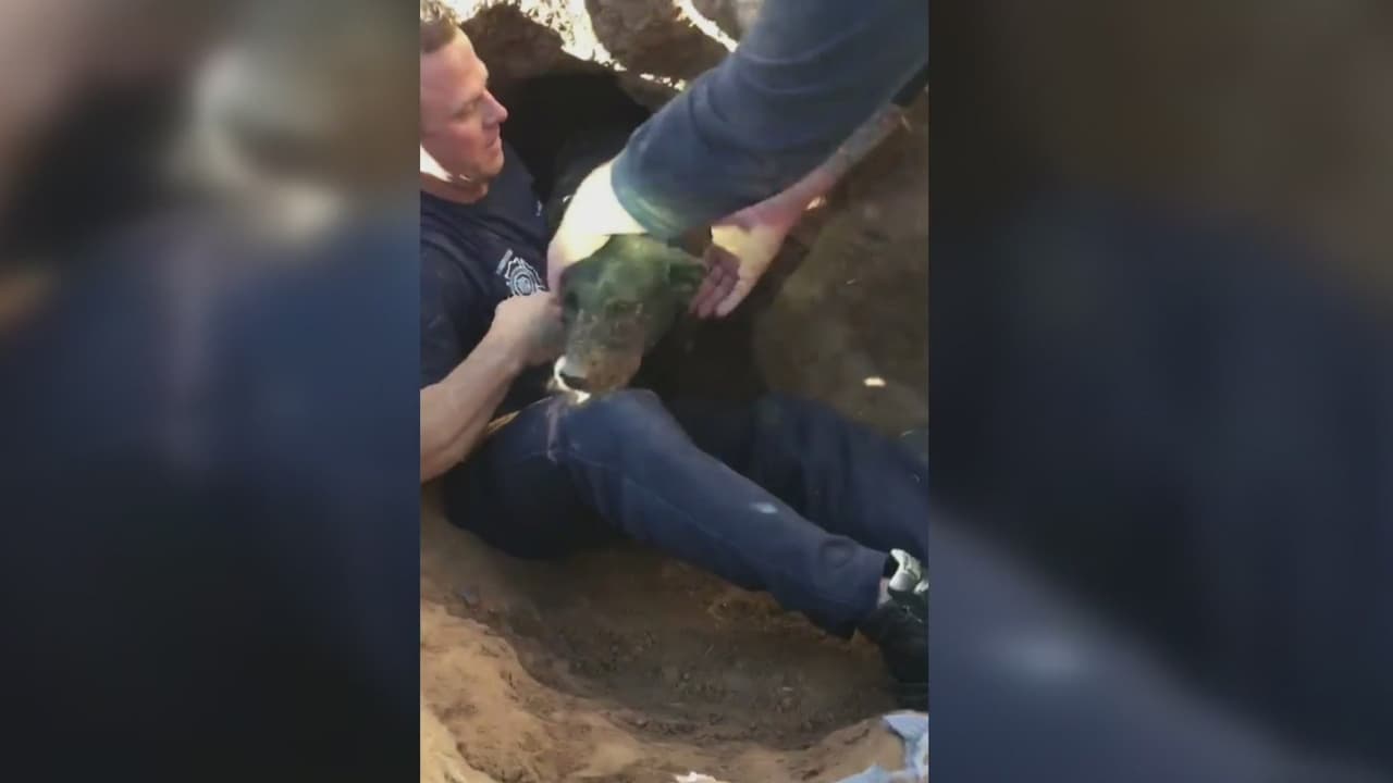 Rescatan a un perrito que se quedó atrapado en un hoyo