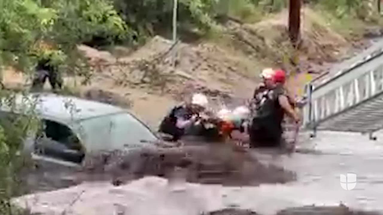 TUCSON, Arizona. - Un torrencial aguacero que cayó sobre Tucson este sábado en la noche causó inundaciones repentinas, los bomberos realizaron un rápido rescate acuático para salvar dos vidas.