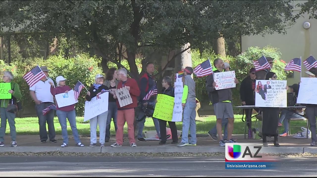 Un grupo de manifestantes protestaron en las oficinas de John McCain contra la construcción del muro fronterizo en una reservación.