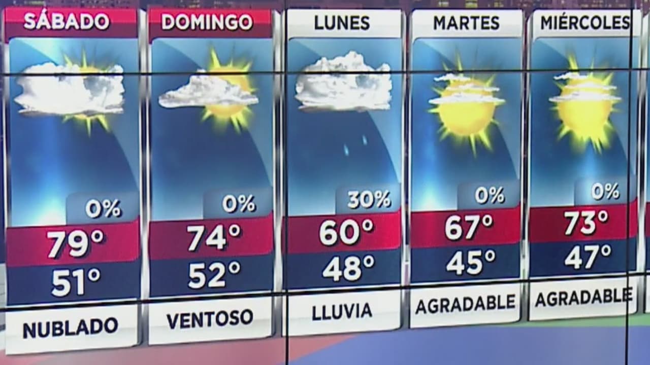 Las temperaturas máximas estarán en el rango de los altos 70 grados, con cielos mayormente despejados.