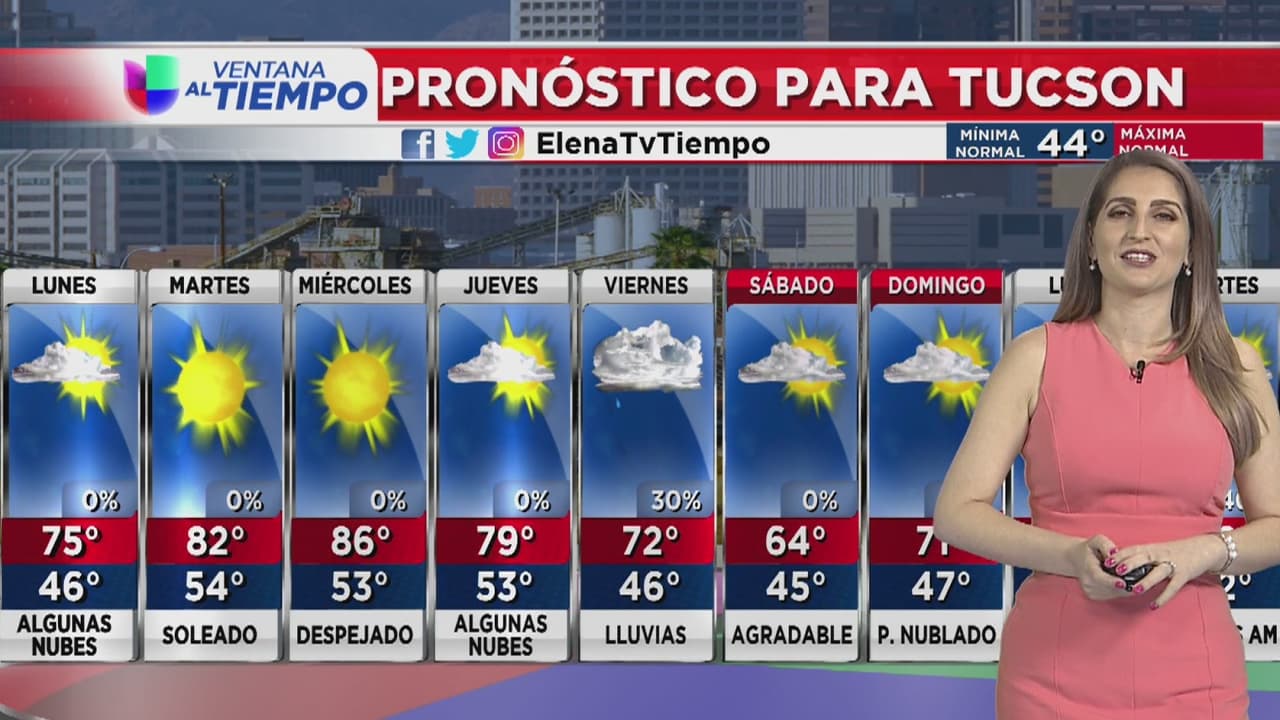 En Phoenix se prevén condiciones despejadas con temperaturas en los mediados 70 grados, en Tucson se esperan condiciones similares.