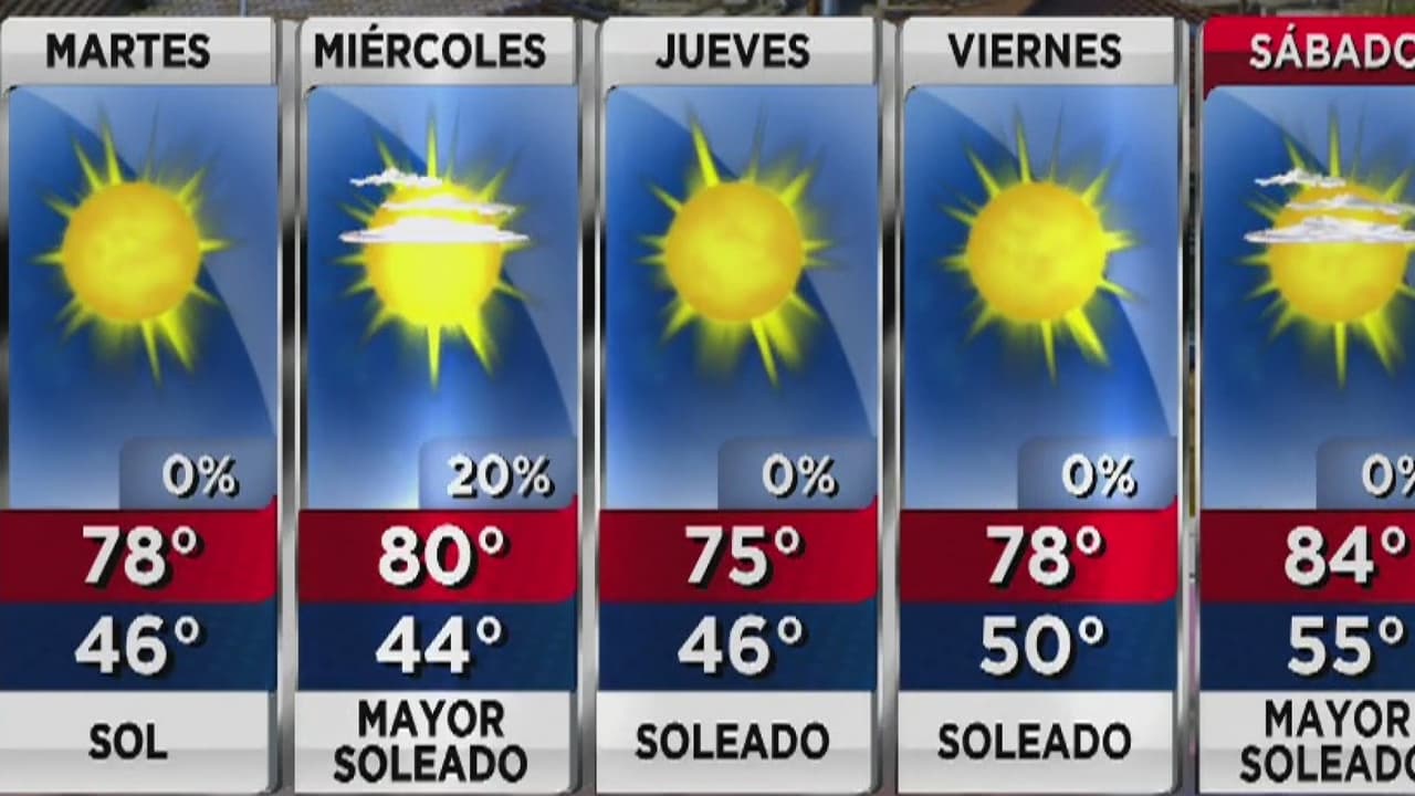 Las temperaturas máximas superarán el rango de los mediados 70 grados, con cielos despejados y condiciones secas.