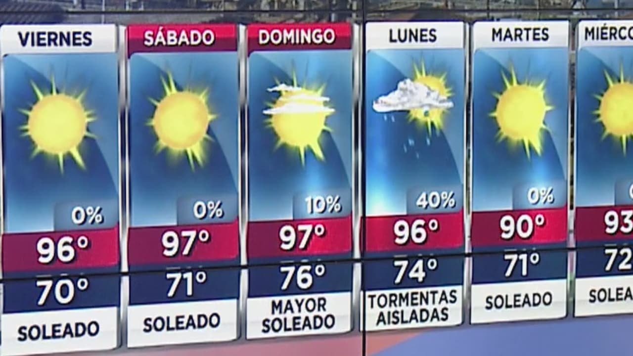 Las temperaturas máximas estarán rondando los mediados 90 grados, con cielos despejados.