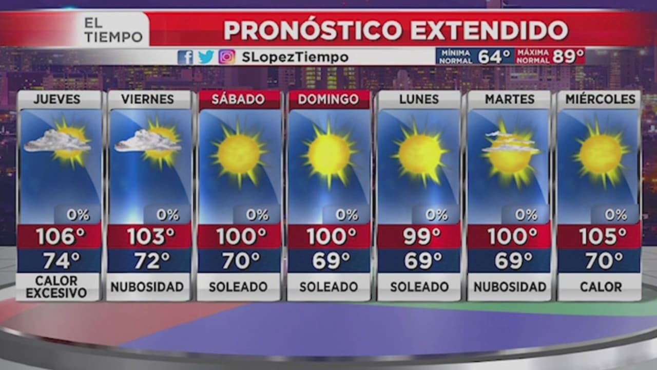 En Phoenix y sus alrededores, las temperaturas máximas llegarán a los 106 grados Fahrenheit y mínimas de 72 grados.