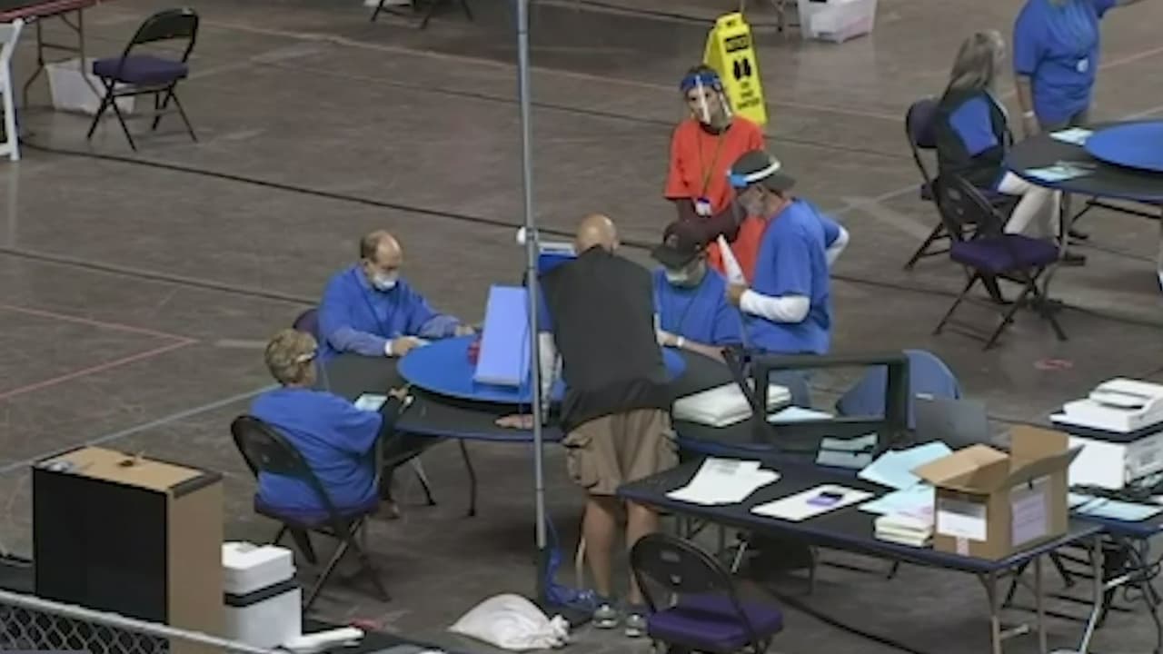 Boletas, computadoras, mesas y todo el equipo que utilizan en este recuento se va a embodegar mientras se realizan graduaciones en el Coliseo de los Veteranos en Phoenix, se espera que el recuento se reanude el 23 de mayo y concluya a finales de junio.