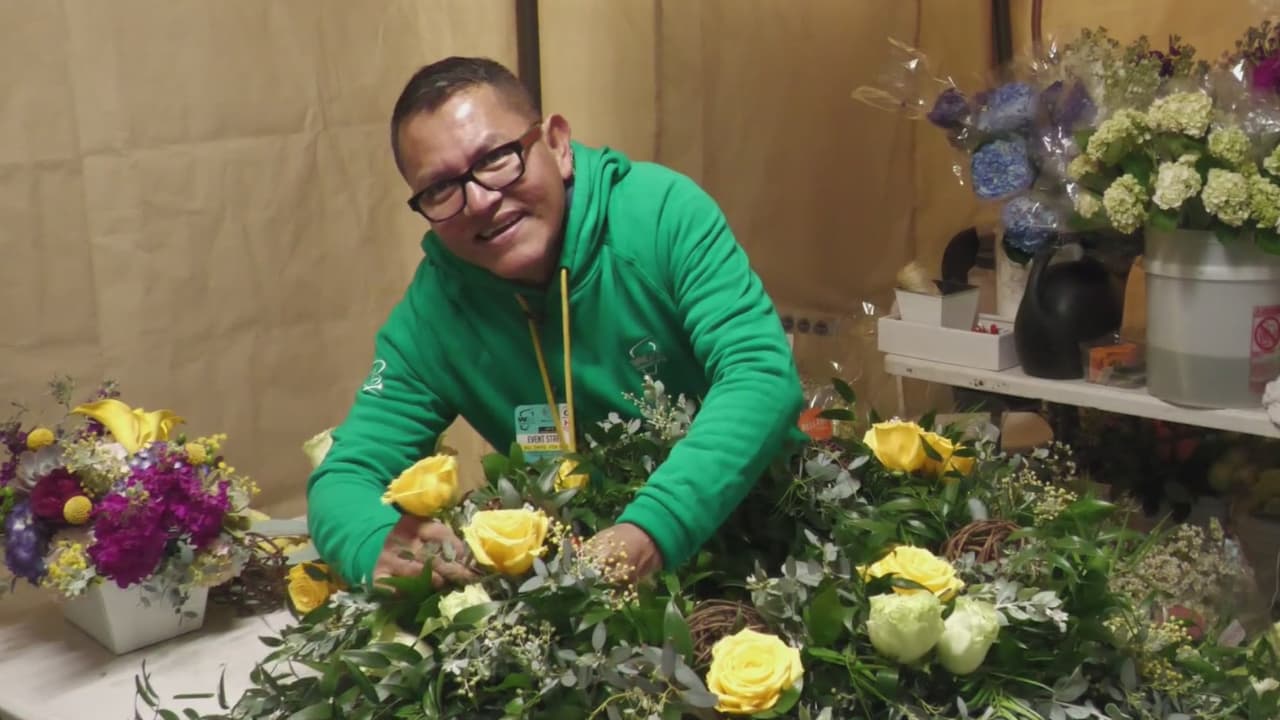 Antonio Mariscal decora no solo los lugares más concurridos del torneo de golf WM Phoenix Open, si no que confecciona la corona de flores que adorna el estante donde descansa el importante trofeo.