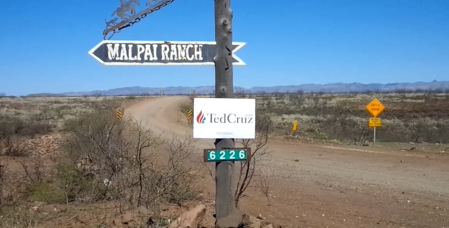 Alrededor de las 12:30 p.m. el convoy de Ted Cruz salió desde la ciudad de Douglas y visitó uno de los ranchos del área, donde se reunió y comió con los dueños de esas propiedades.