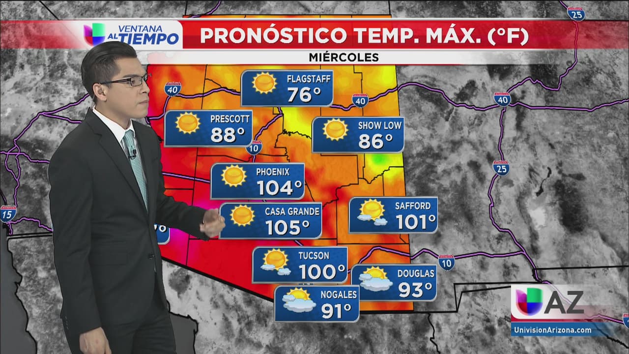 El calor no da tregua en la región, para este miércoles se espera una máxima de 105 grados en Casas Grandes, 104 en Phoenix y 100 en Tucson. Recuerde mantenerse bien hidratado.