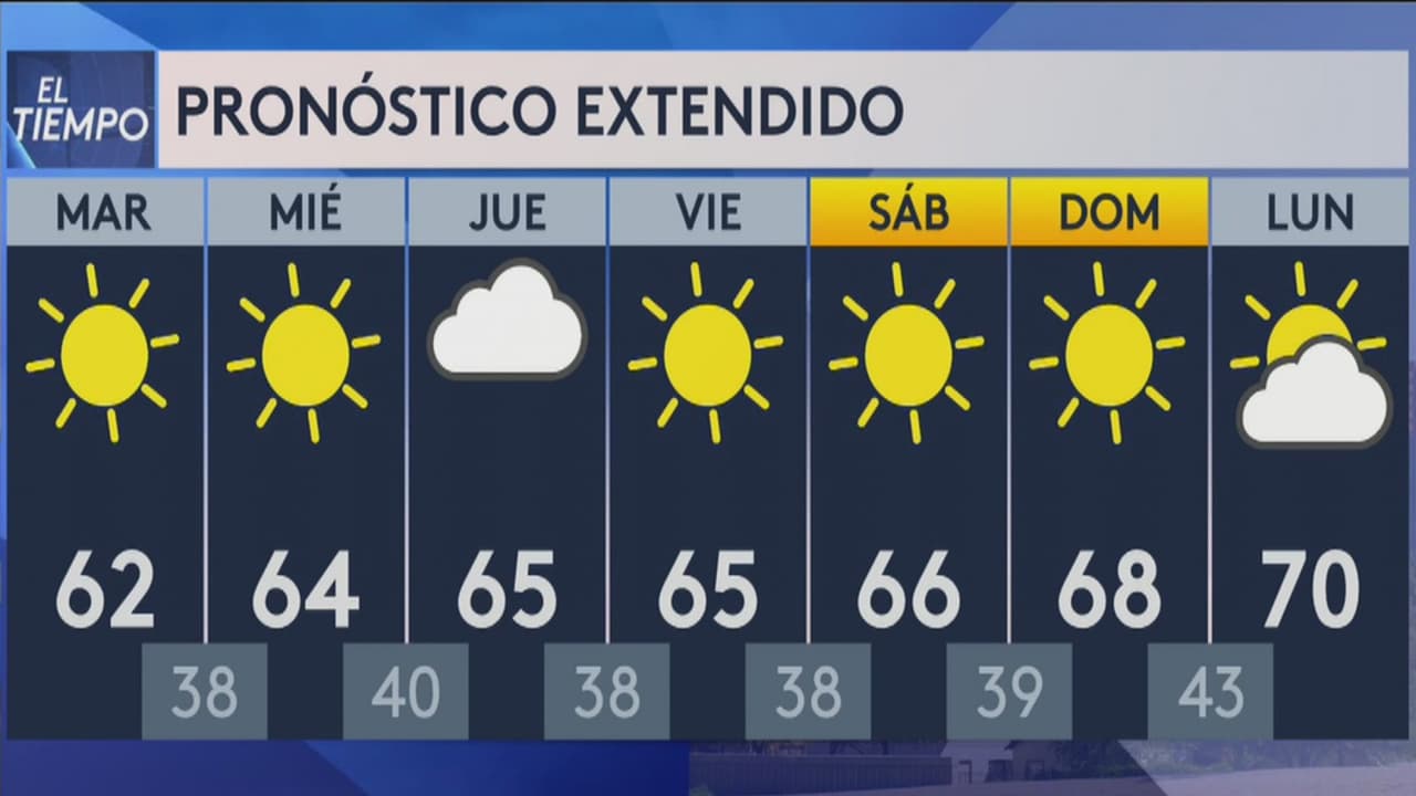 Se prevé un martes con condiciones agradables, un poco de frío por la mañana, pero por la tarde con máximas cercanas a los 60°F, además de cielos despejados y soleados.