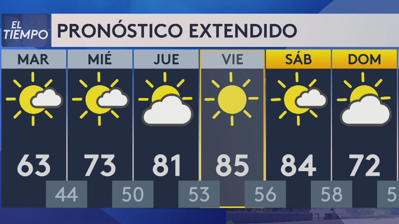 Se prevén temperaturas máximas cerca de los 63 grados Fahrenheit y mínimas de 43 grados en Phoenix y algunas áreas aledañas con cielos nublados. Después de un día fresco hoy, las temperaturas subirán hasta el viernes, y eventualmente alcanzarán los 80 grados centígrados para el viernes y el sábado, indica el Servicio Meteorológico Nacional de Phoenix.