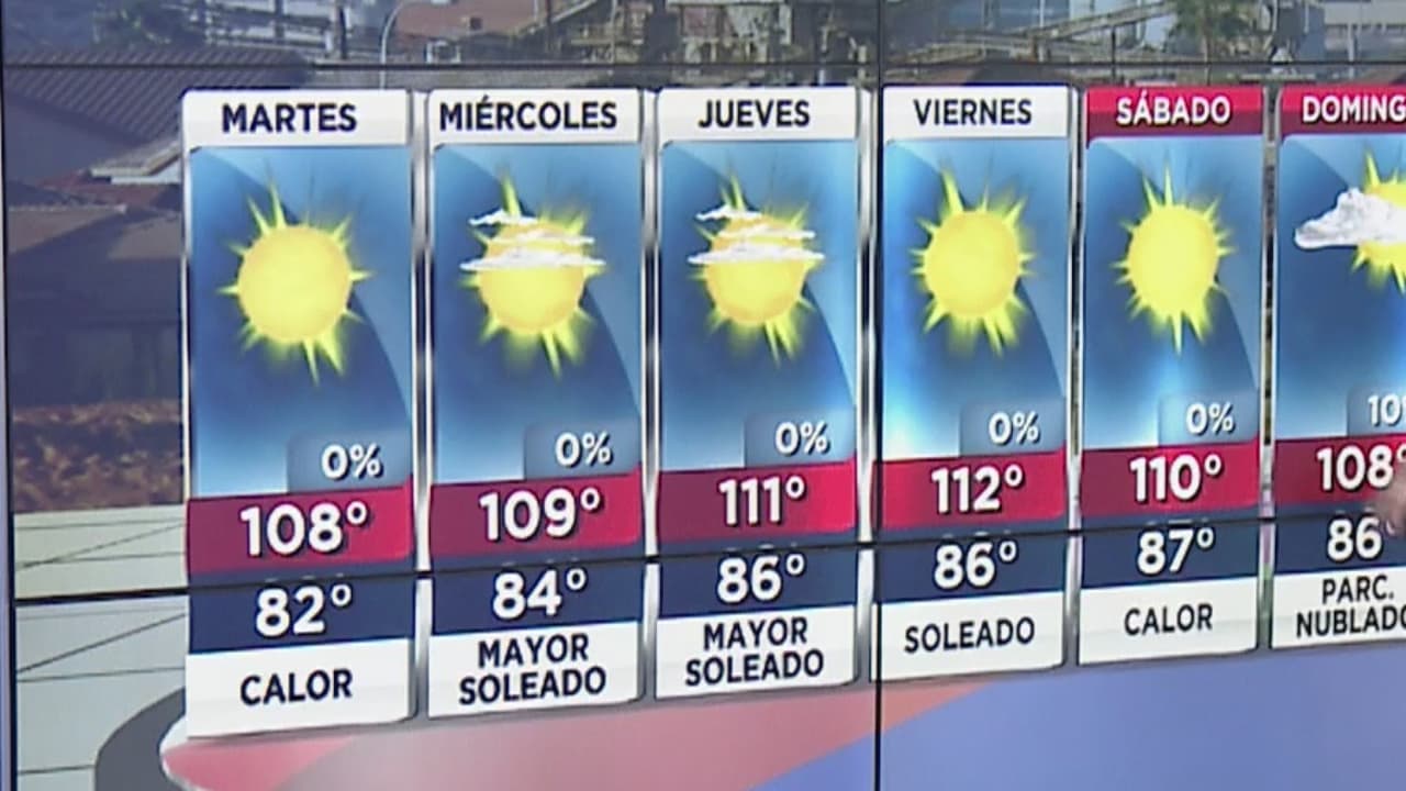 Inicia la semana laboral con temperaturas en los tres dígitos en el valle del sol, para este martes se espera que el mercurio alcance una máxima de 108 grados Fahrenheit. Evite actividades al aire libre.