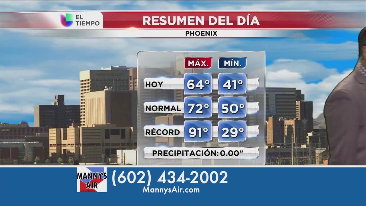 El termómetro alrededor de los 64 grados, se espera que para este viernes por la noche los cielos estén despejados y la temperatura descienda un poco.