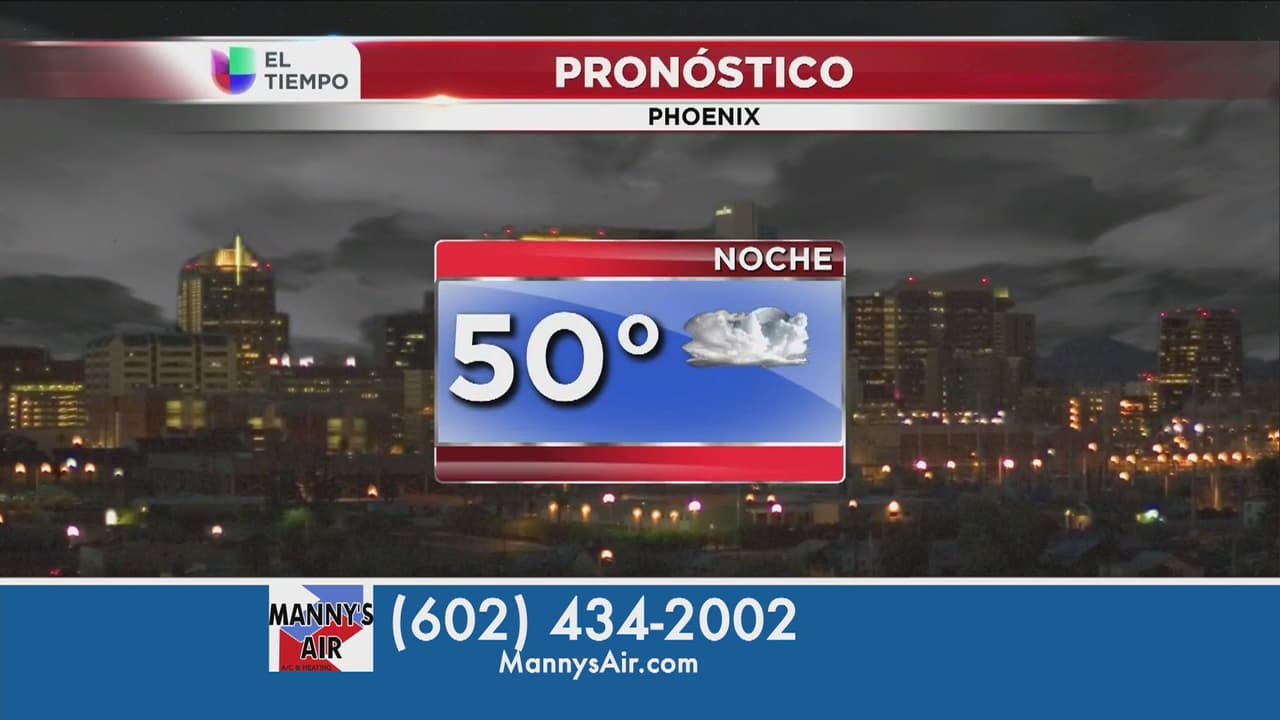 Vientos hacia el norte por los sistemas que están afectando la costa oeste, el panorama permanece estable en Phoenix, por la noche con temperaturas alrededor de los 50 grados.