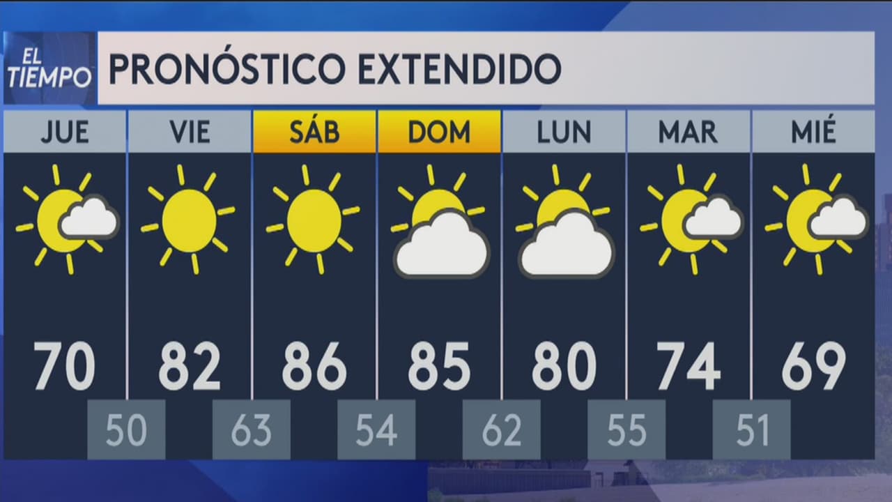 Se prevén temperaturas máximas cerca de los 71 grados Fahrenheit y mínimas de 51 grados en Phoenix y algunas áreas aledañas con cielos nublados. “Las temperaturas se calentarán este fin de semana, con una temperatura media de 80 grados. Asegúrate de hidratarte si vas a pasar mucho tiempo al aire libre”, indica el Servicio Meteorológico Nacional de Phoenix.