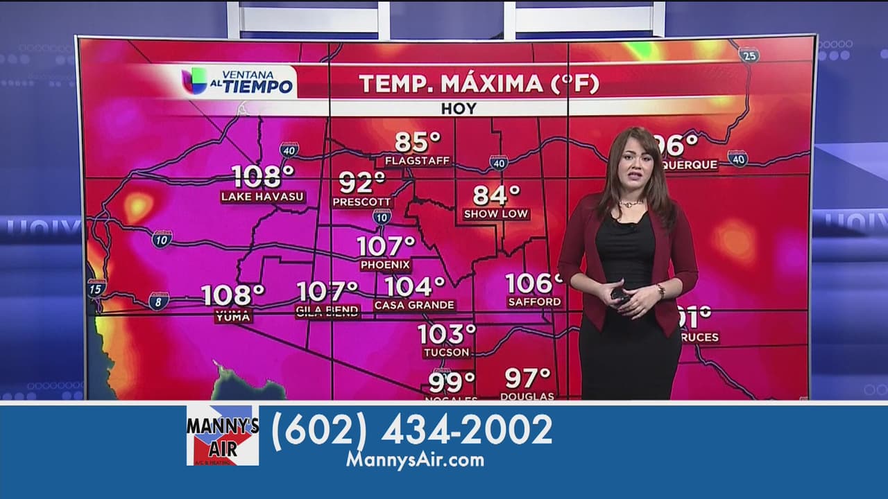 Inicio de semana con temperaturas muy cálidas, en Phoenix el termómetro alcanzó una máxima de 107 grados, mientras en Tucson llegó a los 103, temperaturas que serán similares el resto de la semana.