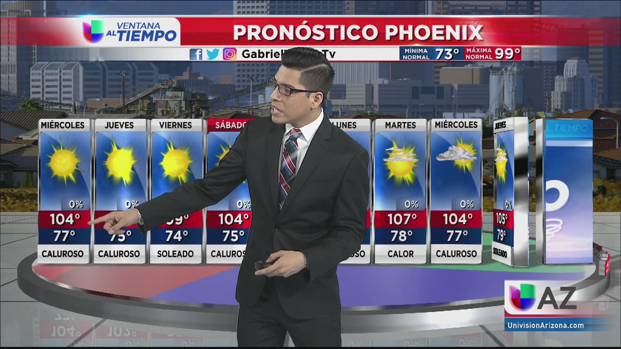 Cielos despejados, viento en calma y ninguna probabilidad de lluvia en la región, para mañana miércoles el termómetro llegará a los 104 grados en Phoenix, mientras en Tucson la máxima de 102.