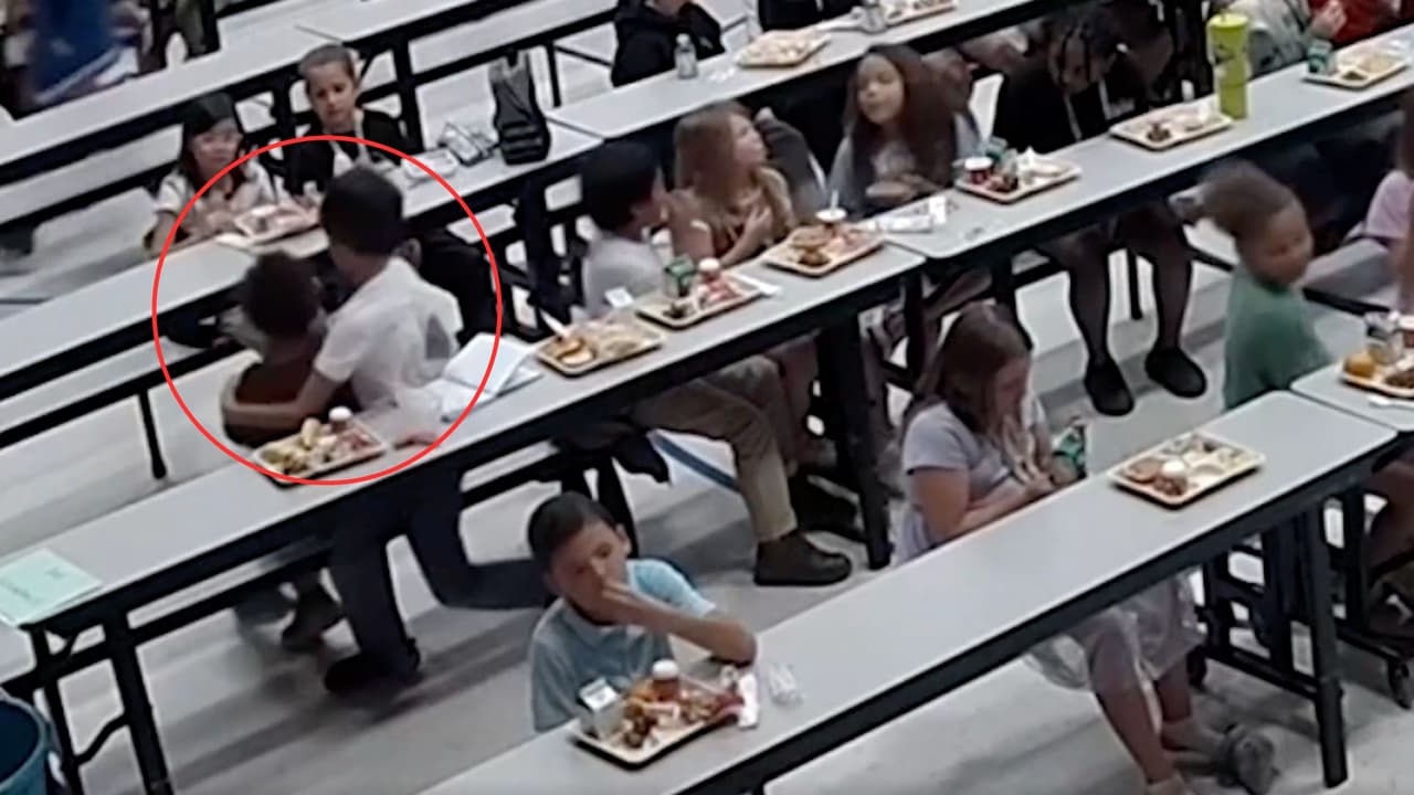 La dramática escena fue captada por las cámaras de seguridad de la cafetería. Y aunque el hecho ocurrió en noviembre pasado, es ahora cuando le ha valido reconocimiento al pequeño Thomas, de 8 años, por su determinación al actuar para poner a salvo a su compañero de clase.