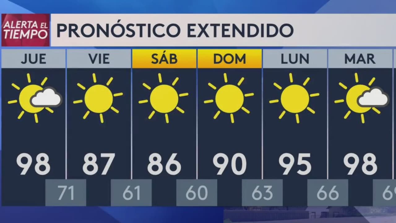 Se prevén temperaturas máximas cerca de los 97 grados Fahrenheit y mínimas de 73 grados en Phoenix y algunas áreas aledañas. Durante los próximos días se esperan condiciones ventosas; este clima tiene el potencial de producir áreas de polvo con visibilidad reducida. Tome sus precauciones.