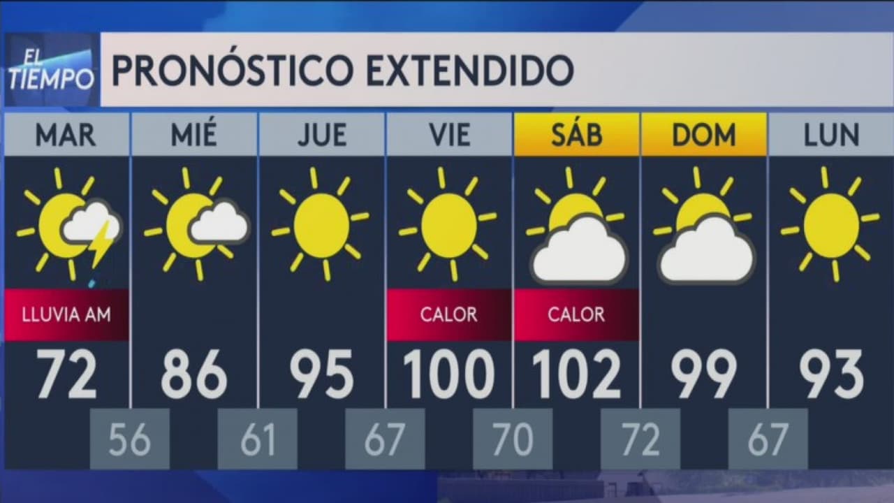 Se prevén temperaturas máximas cerca de los 74 grados Fahrenheit y mínimas de 56 grados en Phoenix y algunas áreas aledañas con cielos nublados. Se espera que lluvia moderada se extienden desde el centro, sur y este de Phoenix, hasta al noreste de la región. El Servicio Meteorológico Nacional le pide al los finiquenses que estén atentos a las carreteras resbaladizas ante las lluvias durante el día.