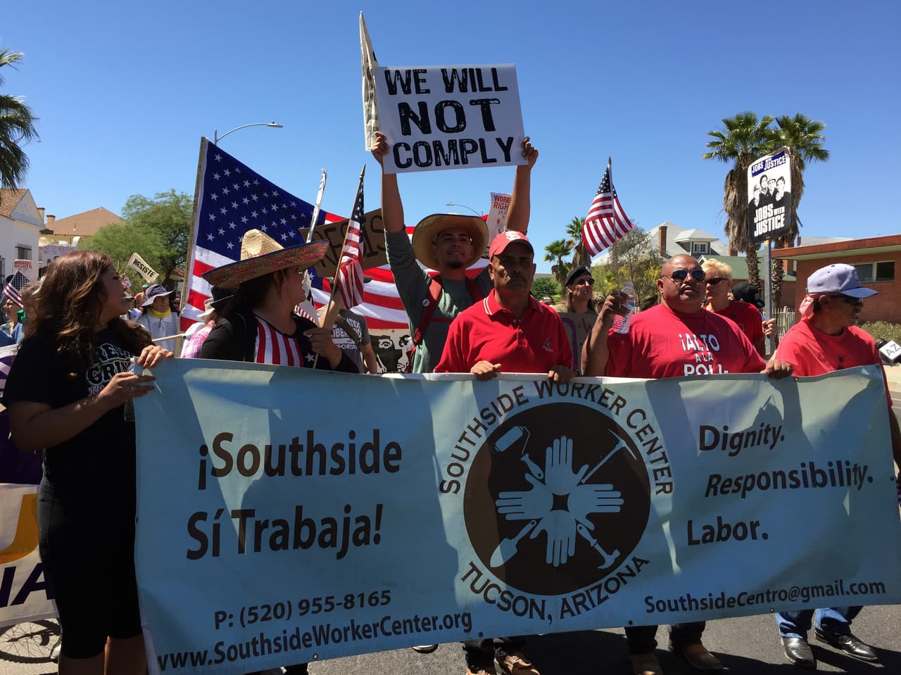 "Trump está atacando a nuestras comunidades llamándonos criminales, pero los inmigrantes han ayudado a formar este país con un trabajo duro y honesto, y ésa es la razón por la cual nosotros marchamos el primero de mayo", dijo Carlos García, director de Puente Arizona.