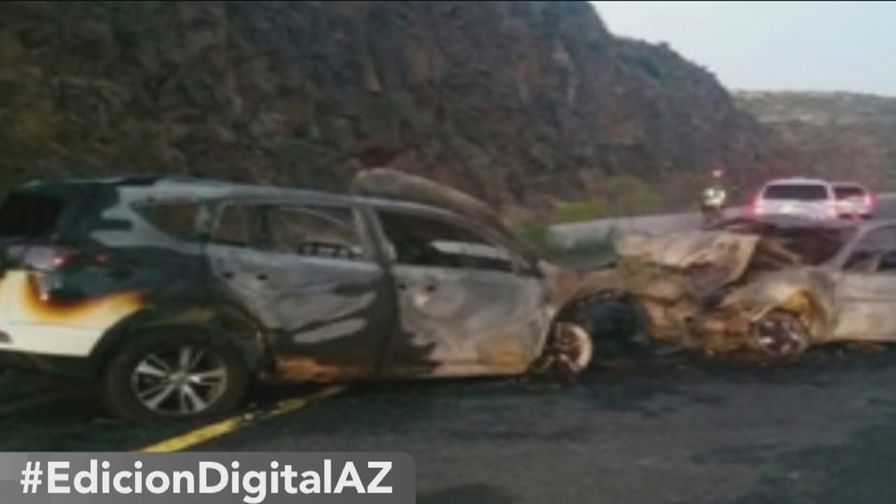 El siniestro ocurrió en la madrugada de este martes en la I-17 a la altura de Black Canyon City. Luego del impacto los autos se incendiaron, quedando completamente calcinados.