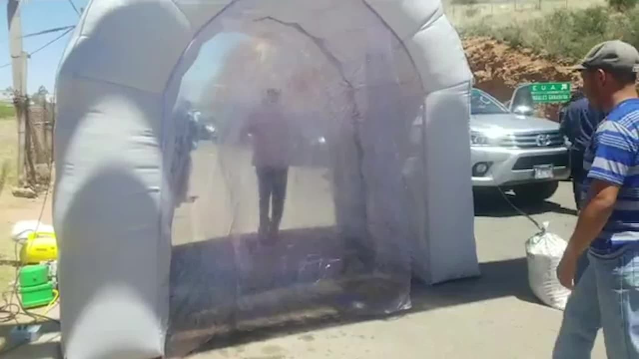 Video Con túneles desinfectantes en la frontera buscan prevenir propagación del coronavirus