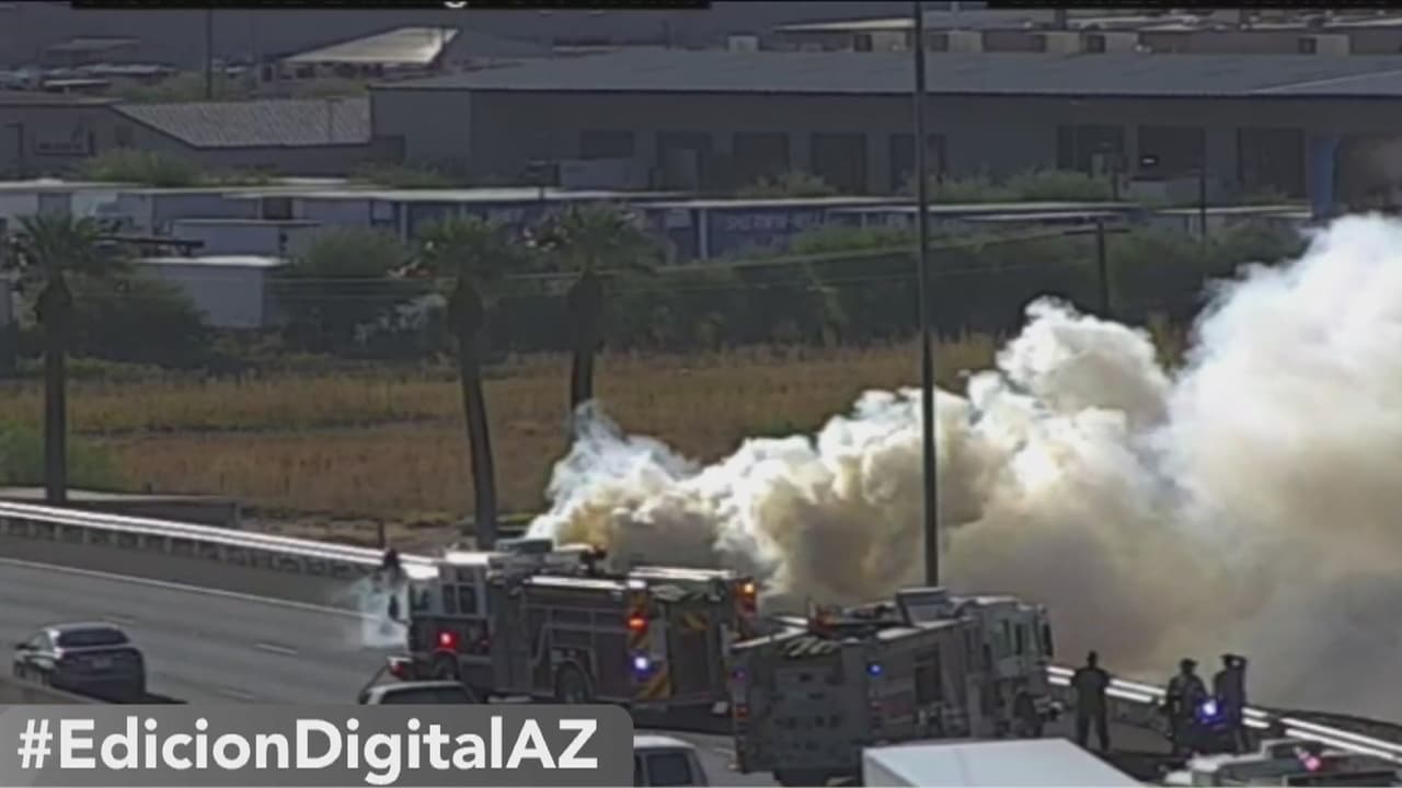 El vehículo se incendió pasando la curva de la calle Durango en la carretera interestatal 17, alrededor de las 8 am de este lunes.