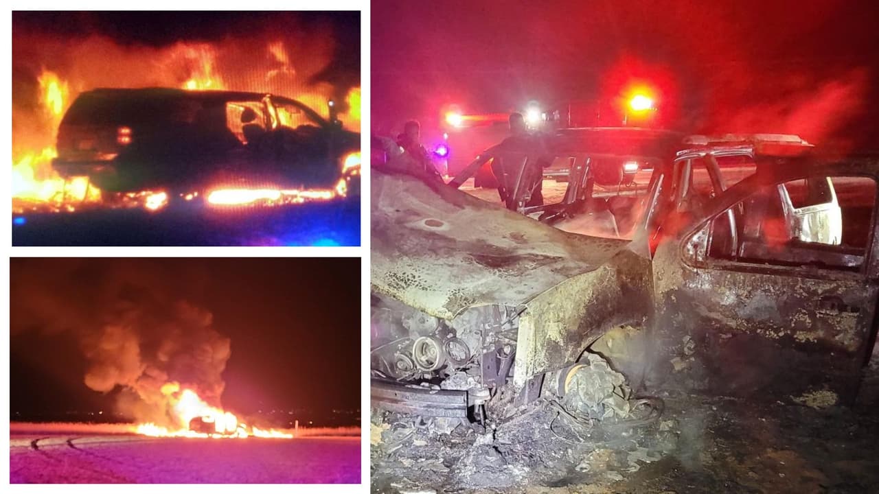 Las autoridades fronterizas publicaron imágenes en las que se observa un vehículo en llamas, luego de provocar un accidente cuando intentaba huir de la autoridades migratorias.