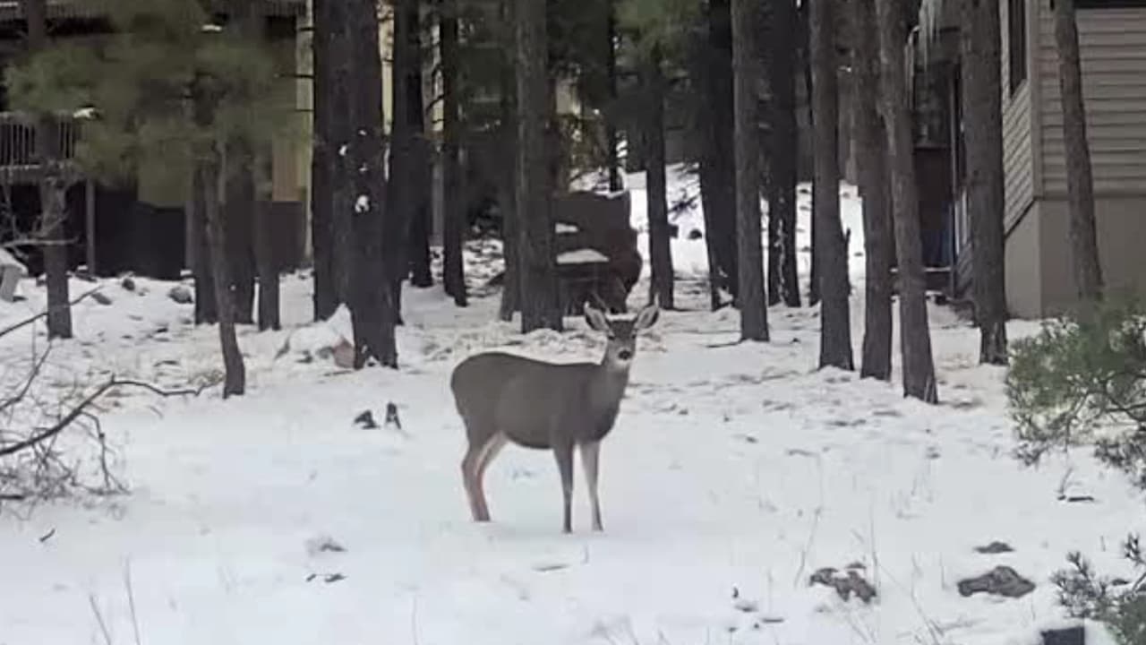 Venados disfrutan de la naturaleza y la nieve en Flagstaff