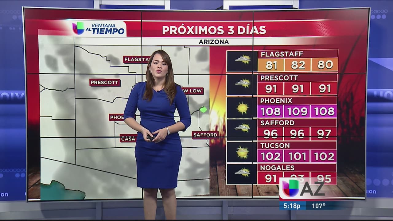 Durante los siguientes días las temperaturas máximas pasarán los 100 grados. Se espera que las tormentas monzónicas reaparezcan la próxima semana.