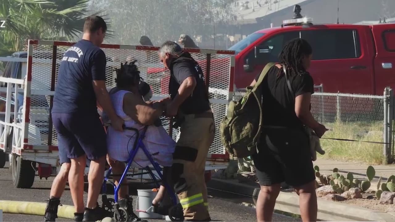 Las llamas se propagaban del patio trasero de una vivienda cerca de las calles 13 y Diamond en Phoenix, movilizando a decenas de bomberos, que también se vieron obligados a evacuar a una vecina de la tercera edad en silla de ruedas. Las brasas salían disparadas hacia la casa de enfrente; su camioneta por poco se prende en llamas.