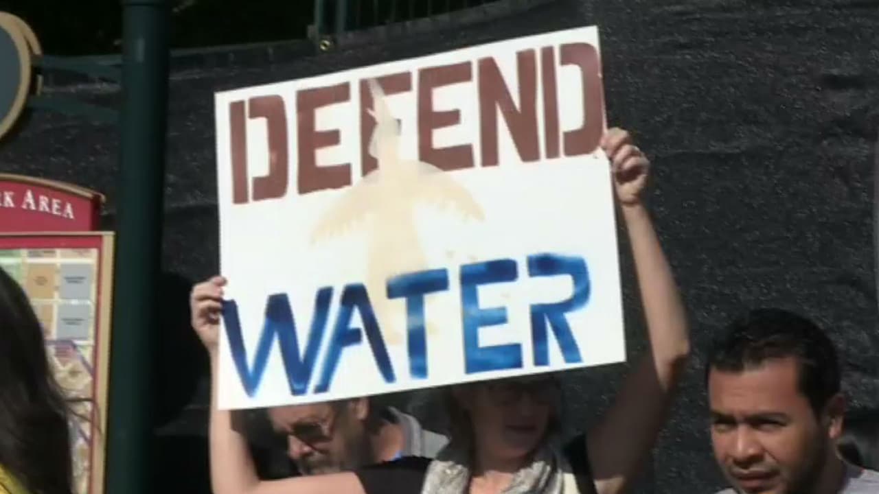 Activistas marchan en apoyo a nativoamericanos que buscan impedir la construcción de oleoducto