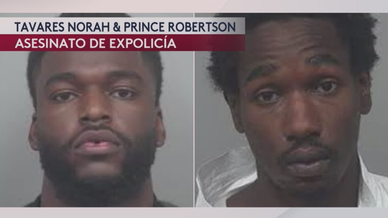 Tavares Norah, de 25 años, y Prince Robertson, de 27 años, acusados de la muerte de Felix Cosme, exoficial de la oficial del alguacil del condado de Gwinnett, se les señala de al menos otros 15 robos a mano armada en tiendas de autopartes en el área metropolitana de Atlanta.