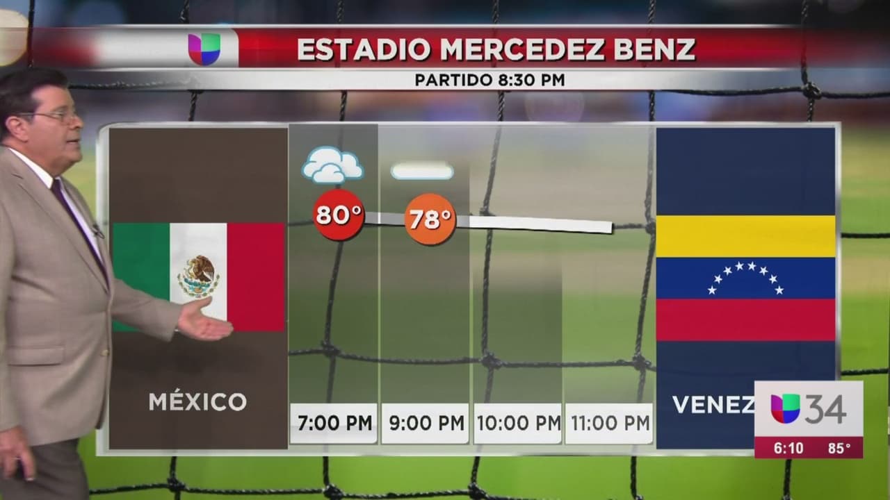 Los cielos se presentarán nublados durante la noche de este miércoles y no se descarta la posibilidad de chubascos en la zona del estadio donde se disputará el juego entre México y Venezuela.