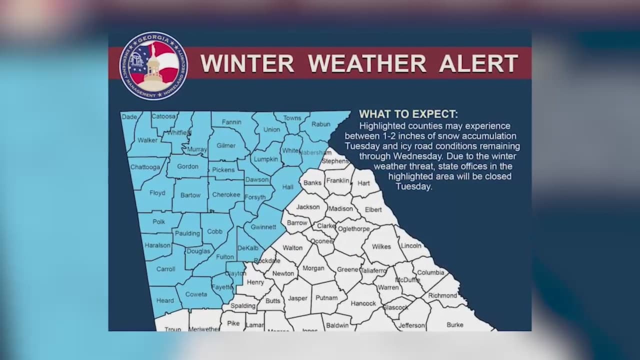 Al menos 39 condados de Georgia permanecen en alerta ante la llegada de una tormenta de nieve