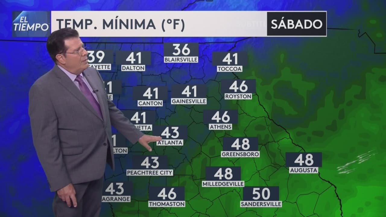 Las temperaturas bajarán considerablemente durante el fin de semana y, en regiones al norte de Georgia, llegarán al punto de congelación. El clima levemente cálido regresa a partir de la próxima semana.