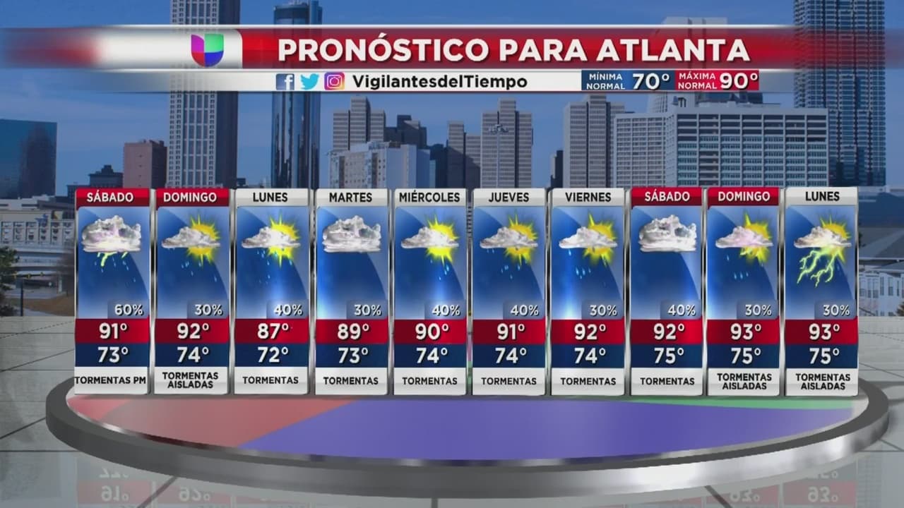 Este sábado tendrá altas temperaturas y se pronostica que las lluvias lleguen al área metropolitana de Atlanta en horas de la noche. Las probabilidades de tormenta se reducirán a partir del domingo.
