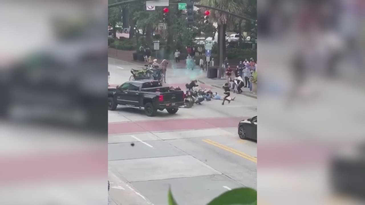 Arrestan a un hombre luego de lanzar una bomba de humo verde y apuntar con una pistola a manifestantes en Georgia