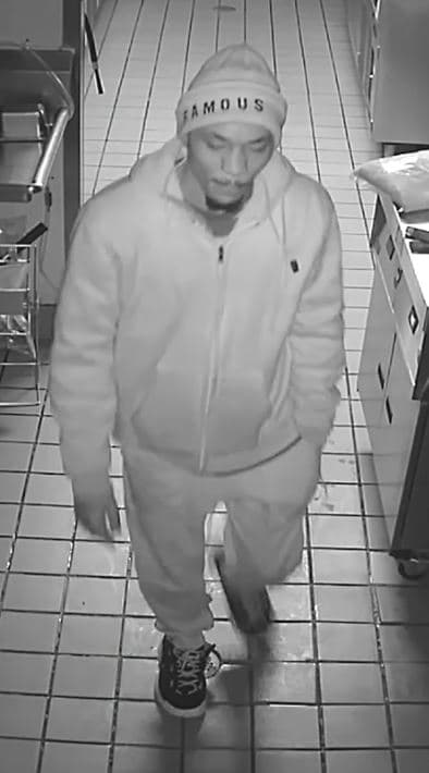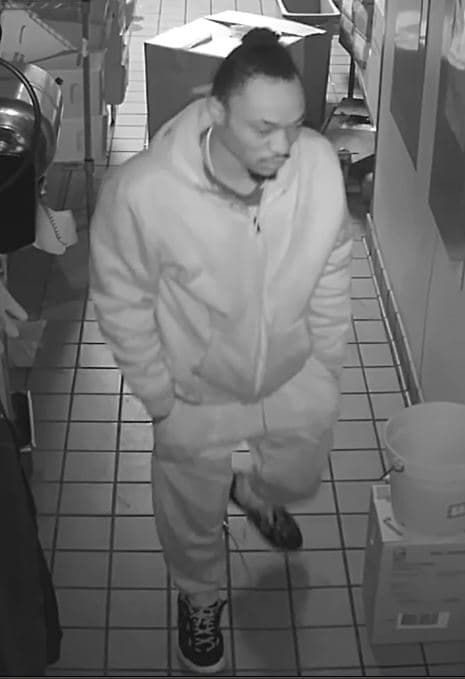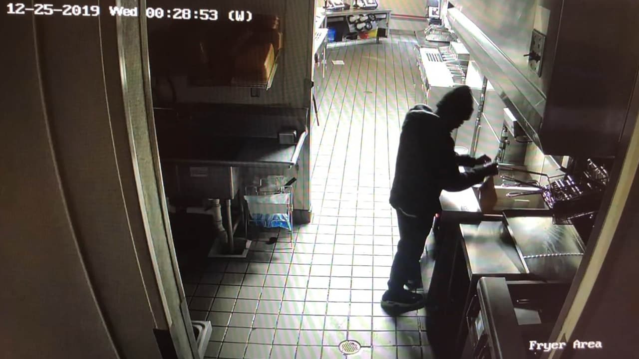 Videos de vigilancia documentaron cuando el sospechoso utilizó las freidoras para prepararse un platillo y luego comió. Posteriormente, el sujeto tomó una siesta en el piso del restaurante.