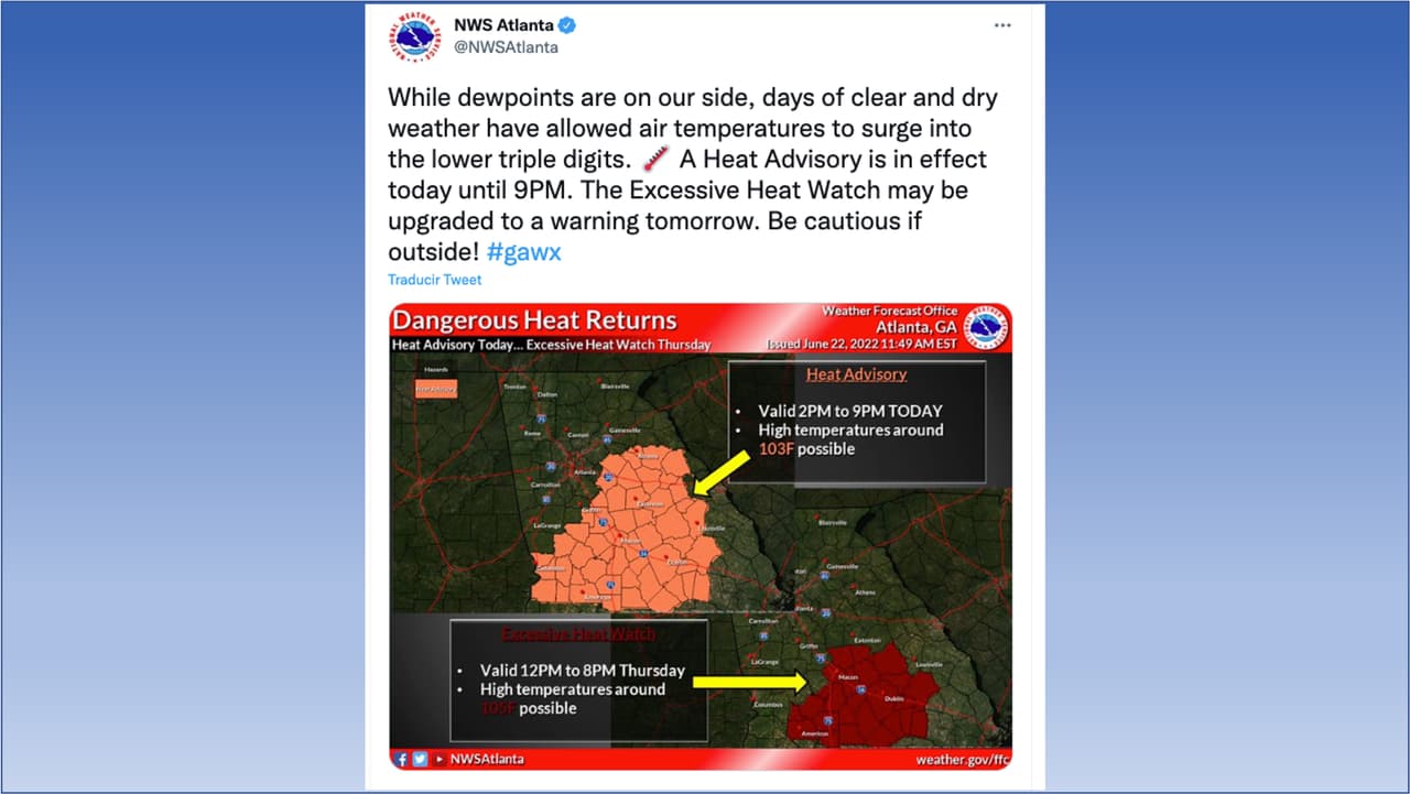 El termómetro podría marcar 100 grados en Atlanta por primera vez en tres años