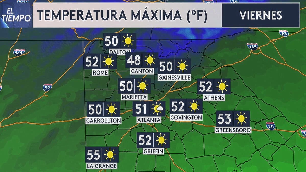 Este viernes se prevé un importante descenso en las temperaturas. La meteoróloga Elena Tabraue habla de las condiciones secas en la mayor parte de Georgia y sobre el día más frío del fin de semana.