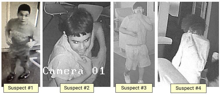 DULUTH, Georgia. La policía pidió este martes la ayuda del público para dar con el paradero de cuatro presuntos ladrones, quienes habrían ingresado a la oficina de un complejo de apartamentos y robado galletas y paquetes de correspondencia.