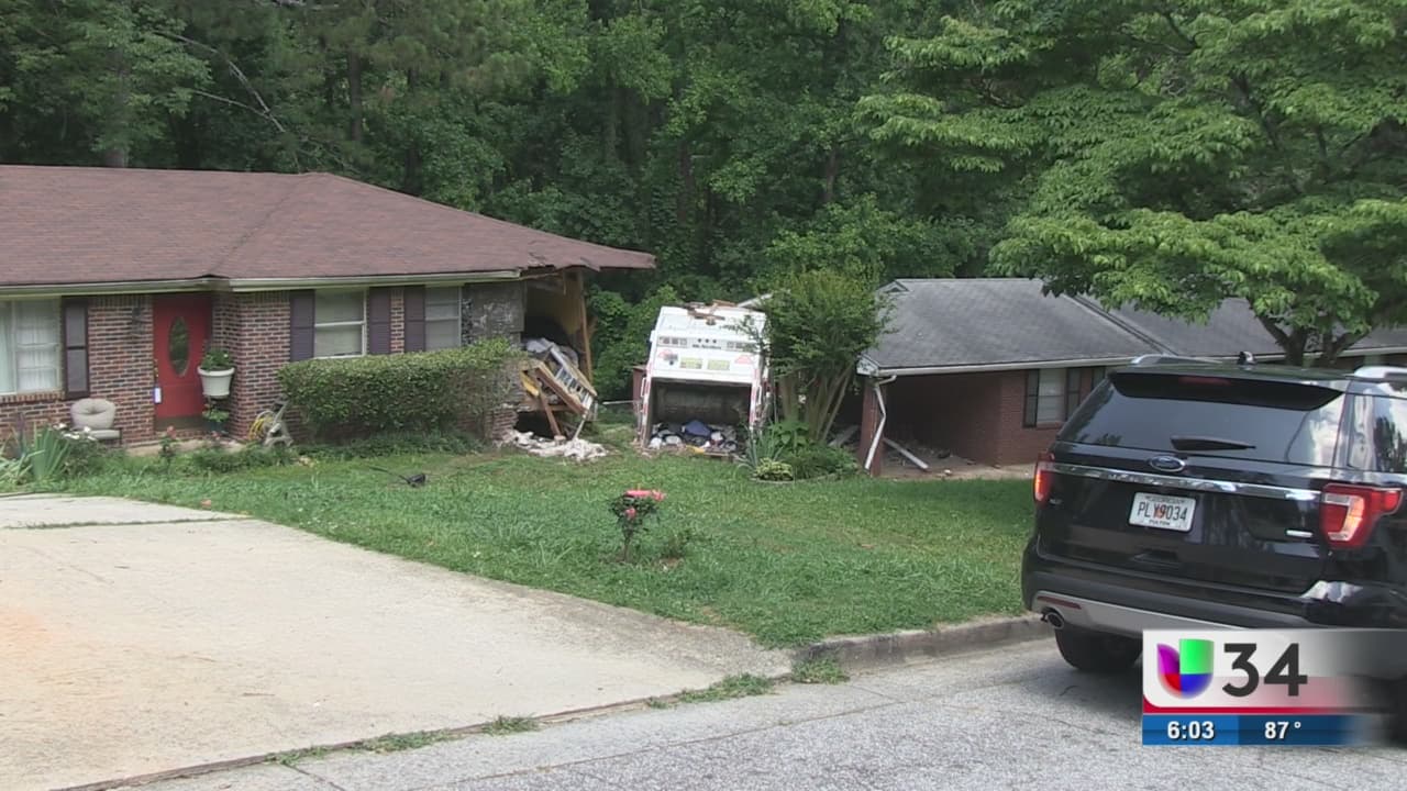 El camión de recolección de basura de la ciudad de Atlanta se salió de la carretera y se estrelló contra dos casas, una mujer de 78 años que vivía en una de las residencias resultó herida.