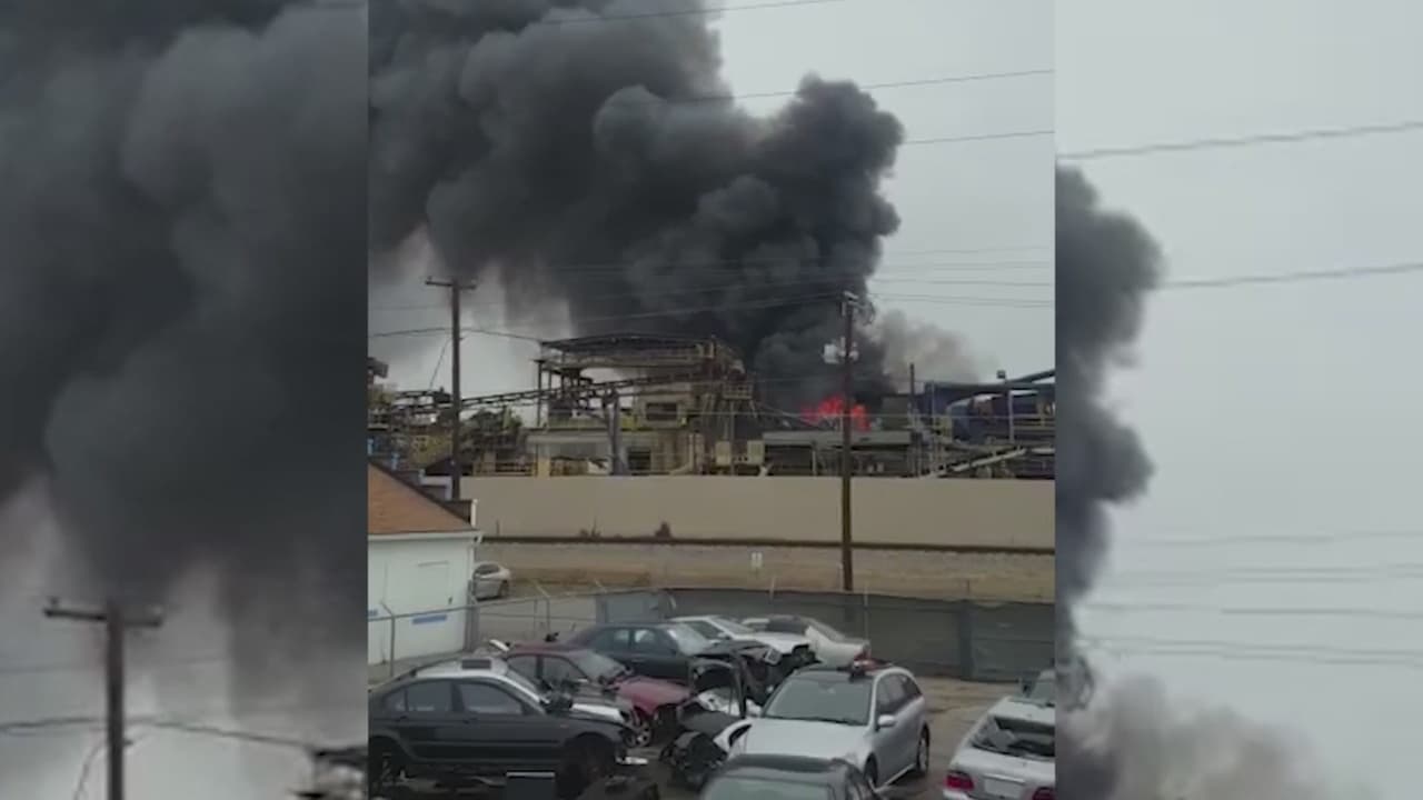 En el video se observa como el cuerpo de bomberos llegó al lugar para ayudar a sofocar las intensas llamas que emanaban de la planta de reciclaje ubicada en East Point.