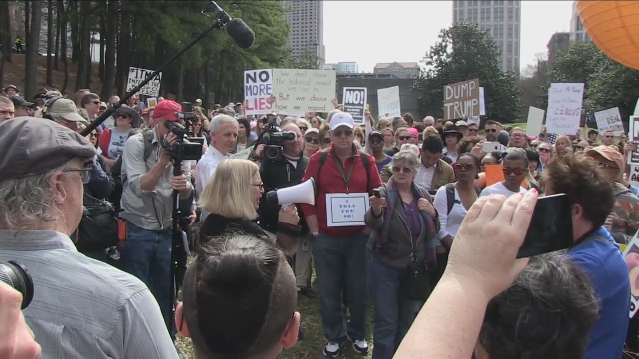 Cientos de personas se manifiestan en contra de Donald Trump en el Día de los presidentes