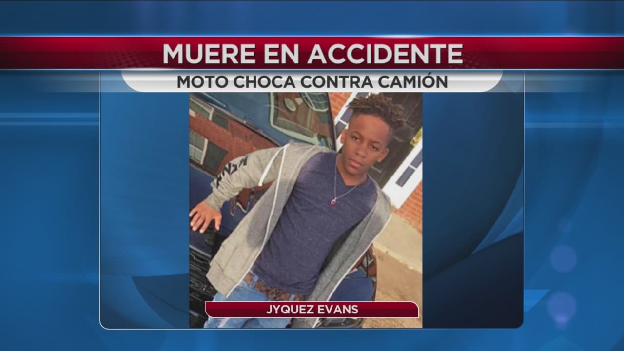 Jyquez Evans de 13 años de edad presuntamente estaba manejando el vehiculo que chocó contra un camión de carga. Testigos comentan que una persona robó su moto mientras era atendido tras el accidente.